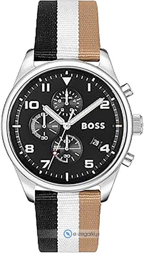 Zegarek męski 1514062 marki Hugo Boss to idealna pozycja dla ludzi ceniących sobie dbałość o szczegóły oraz sprawne funkcjonowanie mechanizmów. Atrakcyjny wygląd czasomierza uzyskano również dzięki tarczy w kolorze czarnym. Godzina zaprezentowana jest w sposób analogowy co niezmiernie łatwo pozwala ją odczytać. Koperta została pokryta kolorem srebrnym szeroka jest na 44 mm - w kształcie okrągłym.