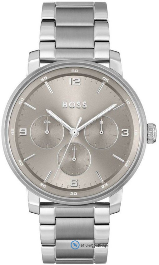 Zegarek męski 1514127 marki Hugo Boss to dobra propozycja dla osób ceniących sobie dbałość o szczegóły a także bezawaryjne działanie mechanizmów. Cyferblat zegarka jest w kolorze szarym. Godzina przedstawiona jest w sposób analogowy co niezmiernie łatwo pozwala ją odczytać. Koperta w odcieniach koloru szarego szeroka jest na 44 mm oraz ma grubość 10 mm - w kształcie okrągłym.