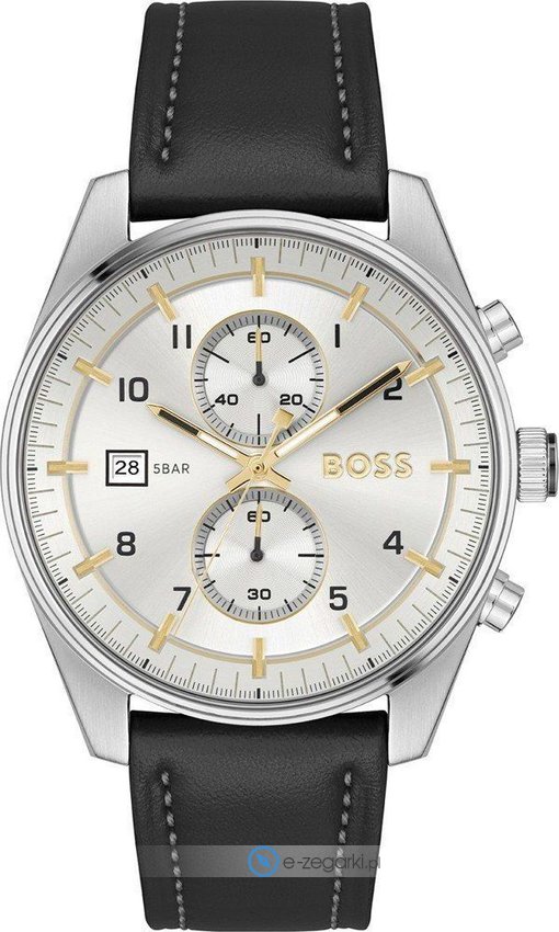 Model 1514147 marki Hugo Boss to stylowy zegarek naręczny męski, który jest wyposażony w ciekawe rozwiązania i funkcje. Charakterystyczny wygląd czasomierza osiągnięto m.in. poprzez tarczę w kolorze srebrnym. Pokazana metodą analogową bieżąca godzina jest czytelna i łatwa do odczytania. Koperta została pokryta kolorem szarym szeroka jest na 44 mm - posiada okrągły kształt.