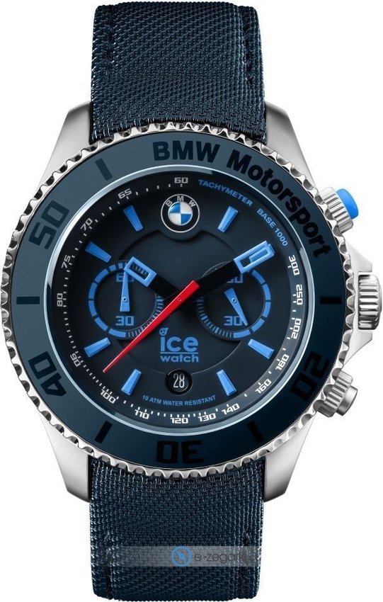 Model męski BMW Motorsport 001125 z serii Ice Watch BMW Motorsport marki Ice Watch. Wysokiej trwałości cyferblat zegarka pokryto granatowym kolorem. Zaprezentowana metodą analogową bieżąca godzina jest czytelna i szybka do sprawdzenia. Koperta szeroka jest na 57 mm oraz ma grubość 13 mm - w kształcie okrągłym.