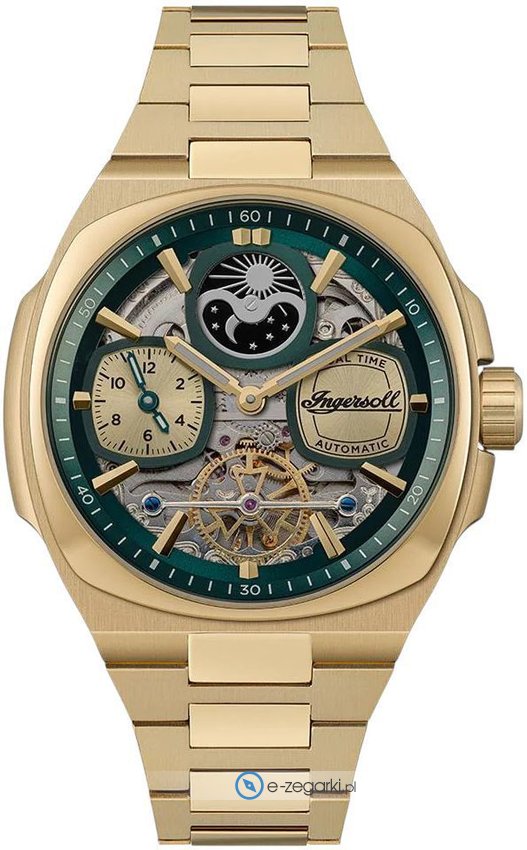 Zegarek I15803 posiada mechanizm automatyczny nakręcający się od ruchu ręki. Wytrzymała bransoleta koloru złotego wykonana ze stali nierdzewnej gwarantuje powyższoną jakość i trwałość.