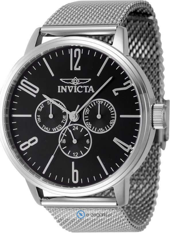 Model 47119 marki Invicta to stylowy zegarek naręczny męski, który posiada pomysłowe rozwiązania i funkcje. Styl zapewnia wysokiej klasy tarcza w kolorze czarnym. Aktualna godzina zaprezentowana jest w sposób analogowy co bez trudu pozwala ją odczytać. Koperta jest w kolorze srebrnym szeroka jest na 44 mm - ma okrągły kształt.
