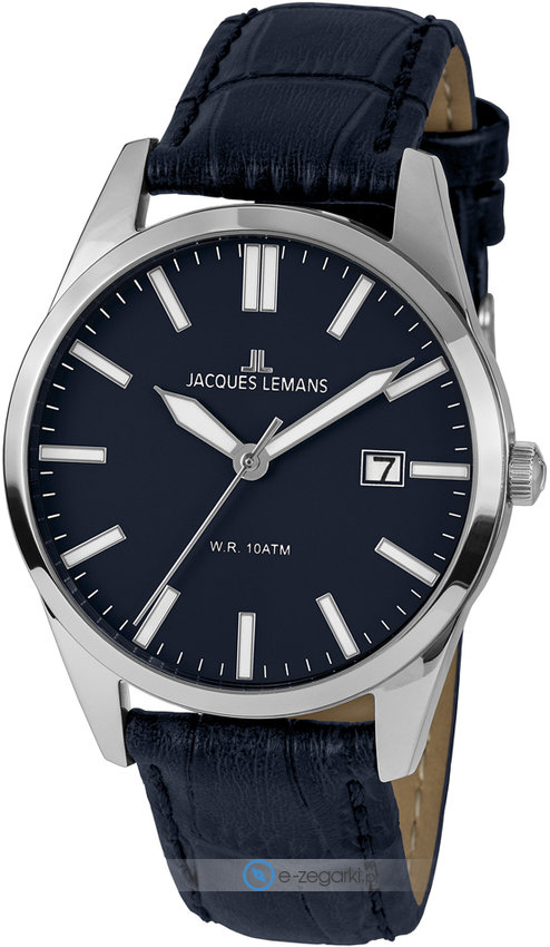 Zegarek męski JL 1-2002F marki Jacques Lemans to idealne połączenie funkcjonalności a także ciekawego wzornictwa. Styl zapewnia wysokiej klasy tarcza w kolorze granatowym. Zegarek ten pokazuje godzinę w formacie analogowym dzięki czemu odczyt jest bezproblemowy. Koperta szeroka jest na 40 mm oraz ma grubość 8 mm - w kształcie okrągłym.