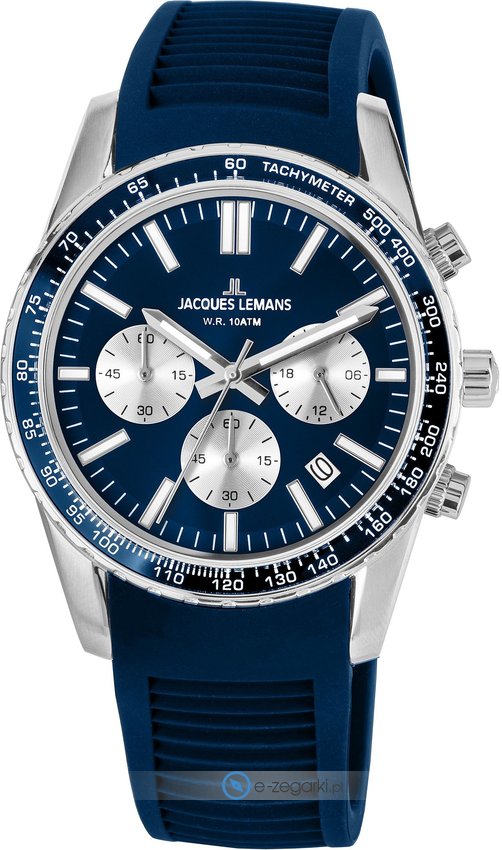 Zegarek męski JL 1-2059C marki Jacques Lemans to idealne połączenie funkcjonalności i ciekawego wzornictwa. Nieschematyczny wygląd czasomierza osiągnięto także dzięki tarczy w kolorze granatowym. Pokazana metodą analogową bieżąca godzina jest czytelna i łatwa do sprawdzenia. Koperta w odcieniach koloru srebrnego szeroka jest na 39 mm - posiada okrągły kształt.