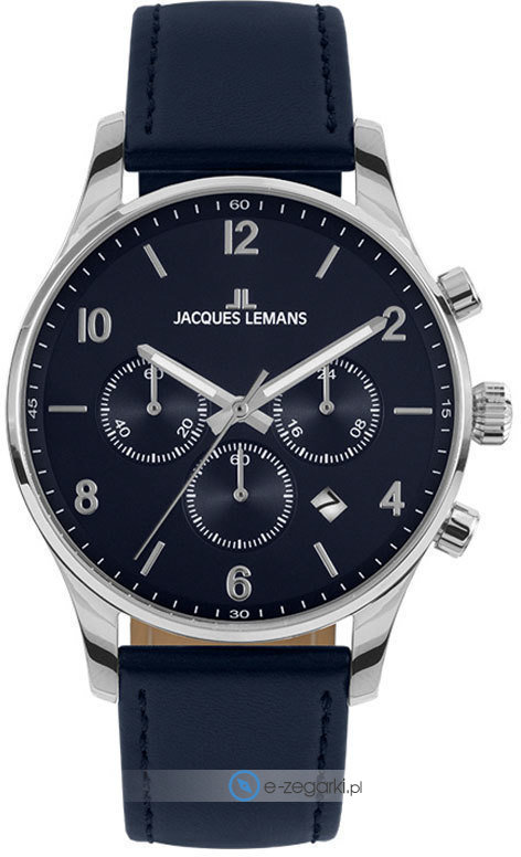 Męski zegarek Jacques Lemans JL 1-2126C to zegarek, który dzięki swemu wzornictwu zawsze będzie prezentował się dobrze. Charakter zapewnia wysokiej klasy cyferblat w kolorze granatowym. Zegarek ten prezentuje godzinę w formacie analogowym dzięki czemu odczyt jest bezproblemowy. Koperta w odcieniach koloru srebrnego szeroka jest na 40 mm - w kształcie okrągłym.