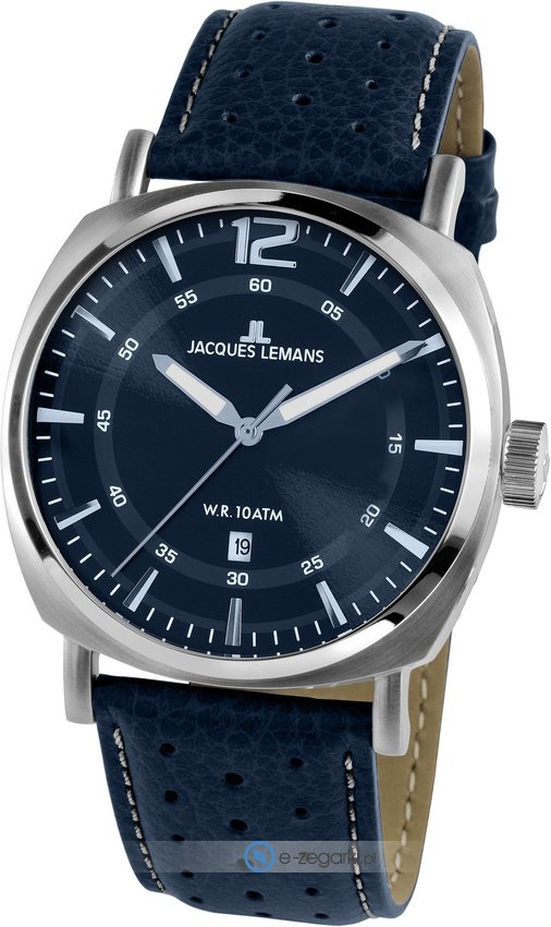 Zegarek męski JL 1-1943H marki Jacques Lemans to idealne połączenie funkcjonalności oraz ciekawego wzornictwa. Model ten w gamie innych zegarków tego producenta występuje w kolekcji Jacques Lemans Liverpool. Atrakcyjny wygląd zegarka uzyskano m.in. poprzez tarczę w kolorze granatowym. Zaprezentowana metodą analogową aktualna godzina jest czytelna i łatwa do sprawdzenia. Koperta w barwach koloru srebrnego szeroka jest na 42 mm - w kształcie okrągłym.
