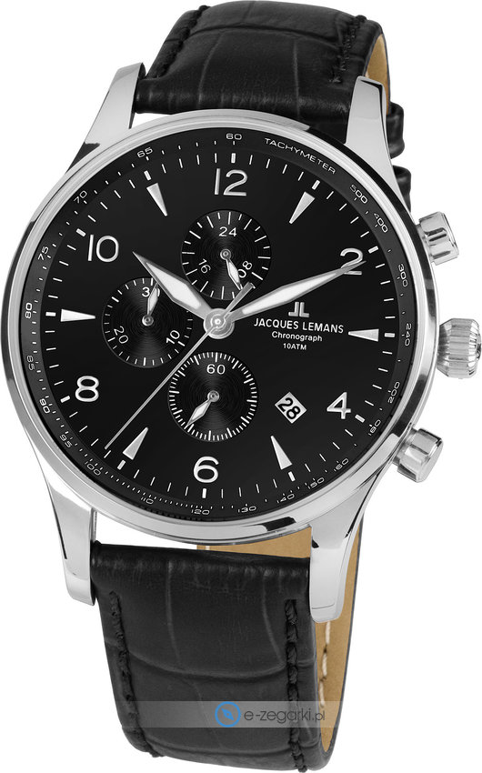 Zegarek męski JL 1-1844ZA marki Jacques Lemans to idealne połączenie funkcjonalności oraz ciekawego wzornictwa. Model ten należy do kolekcji Jacques Lemans London. Atrakcyjny wygląd czasomierza osiągnięto także dzięki tarczy w kolorze czarnym. Godzina przedstawiona jest w sposób analogowy co niezmiernie łatwo pozwala ją odczytać. Koperta w odcieniach koloru srebrnego szeroka jest na 44 mm - posiada okrągły kształt.