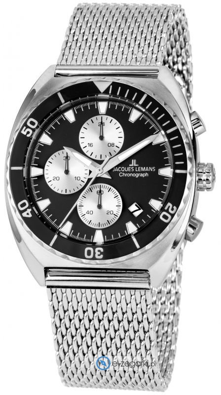 Męski zegarek JL 1-2041D z kolekcji Jacques Lemans Retro marki Jacques Lemans to połączenie smaku i pomysłowych funkcji. Wysokiej jakości cyferblat zegarka ozdobiono czarnym kolorem. Zegarek ten pokazuje aktualny czas w formacie analogowym dzięki temu odczyt jest bardzo łatwy. Koperta w barwach koloru srebrnego szeroka jest na 41 mm - w kształcie okrągłym.