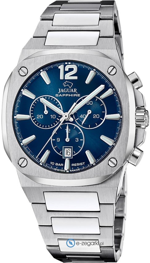 Zegarek męski J1025-1 marki Jaguar to ciekawa propozycja dla ludzi ceniących sobie dbałość o szczegóły oraz bezproblemowe funkcjonowanie mechanizmów. Wysokiej jakości tarczę zegarka ozdobiono granatowym kolorem. Zegarek ten pokazuje godzinę w formacie analogowym dzięki temu odczyt jest bardzo łatwy. Koperta w barwach koloru srebrnego szeroka jest na 43 mm oraz ma grubość 12 mm - w kształcie okrągłym.