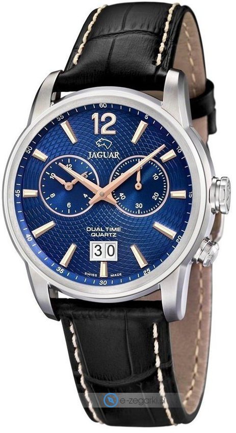 Zegarek męski J619-J marki Jaguar to idealna propozycja dla osób ceniących sobie dbałość o detale jak również bezawaryjne funkcjonowanie mechanizmów. Styl zapewnia wysokiej klasy cyferblat w kolorze niebieskim. Zaprezentowana metodą analogową bieżąca godzina jest czytelna i szybka do odczytania. Koperta jest w kolorze stalowym - w kształcie okrągłym.