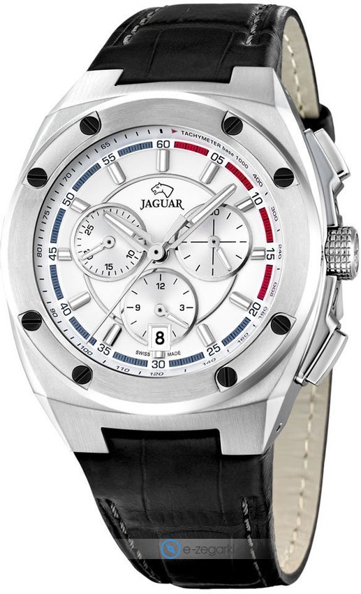 Zegarek męski J806-1 marki Jaguar to idealne połączenie funkcjonalności a także ciekawego wzornictwa. Wysokiej trwałości tarczę zegarka pokryto srebrnym kolorem. Zaprezentowana metodą analogową bieżąca godzina jest czytelna i prosta do odczytania. Koperta szeroka jest na 44 mm - charakteryzuje się okrągłym kształtem.