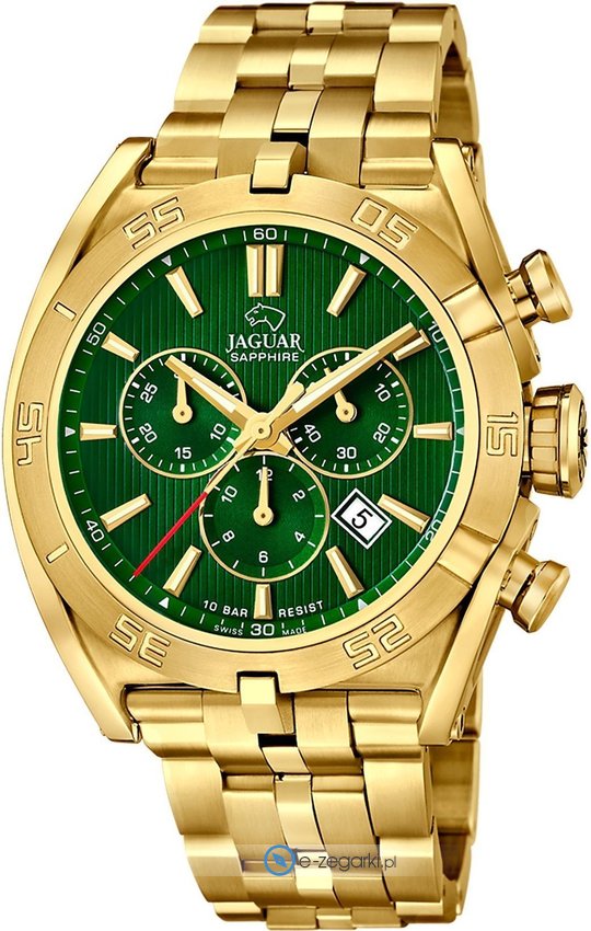 Zegarek męski J853-A marki Jaguar to idealne połączenie funkcjonalności a także ciekawego wzornictwa. Charakteru nadaje wysokiej klasy tarcza w kolorze zielonym. Zegarek ten pokazuje aktualny czas w formacie analogowym dzięki czemu odczyt jest bardzo łatwy. Koperta szeroka jest na 45 mm - w kształcie okrągłym.