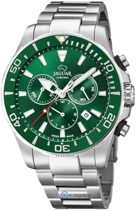Zegarek męski J861-4 marki Jaguar to idealna pozycja dla osób ceniących sobie dbałość o szczegóły a także sprawne działanie mechanizmów. Tarcza zegarka jest w kolorze zielonym. Zegarek ten prezentuje aktualny czas w formacie analogowym dzięki czemu odczyt jest intuicyjny. Koperta w odcieniach koloru srebrnego szeroka jest na 43 mm - w kształcie okrągłym.