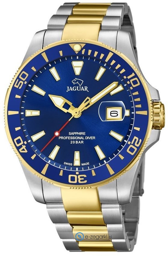 Zegarek męski J863-1 marki Jaguar to ciekawa pozycja dla ludzi ceniących sobie dbałość o szczegóły a także sprawne funkcjonowanie mechanizmów. Ciekawy wygląd zegarka osiągnięto również dzięki tarczy w kolorze niebieskim. Zegarek ten pokazuje aktualny czas w formacie analogowym dzięki temu odczyt jest bezproblemowy. Koperta szeroka jest na 43 mm - w kształcie okrągłym.
