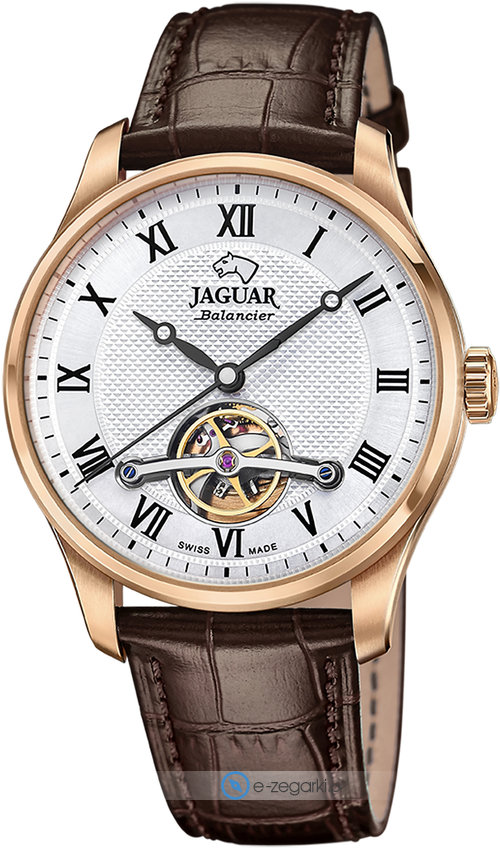 Zegarek męski Jaguar J967-2 to propozycja dla mężczyzn, którzy cenią sobie połączenie szwajcarskiego kunsztu z dbałością o każdy, nawet najmniejszy szczegół. Ten czasomierz, z mechanizmem automatycznym, to synonim niezawodności i precyzji. Biała tarcza w połączeniu z różowo-złotą kopertą tworzą harmonijną całość, a analogowy odczyt godziny zapewnia klasyczną czytelność. Koperta o szerokości 42 mm i grubości 11 mm doskonale układa się na nadgarstku, a pasek wykonany z wysokiej klasy skóry gwarantuje komfort noszenia. W świecie luksusowych marek,