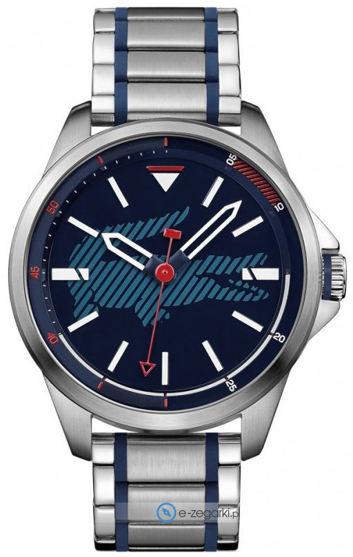 Zegarek męski 2010944 marki Lacoste to dobra pozycja dla ludzi ceniących sobie dbałość o szczegóły a także bezproblemowe zachowanie mechanizmów. Nieschematyczny wygląd zegarka uzyskano m.in. poprzez tarczę w kolorze niebieskim. Zegarek ten pokazuje godzinę w formacie analogowym dzięki czemu odczyt jest intuicyjny. Koperta w barwach koloru srebrnego szeroka jest na 46 mm oraz ma grubość 11 mm - w kształcie okrągłym.