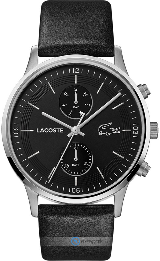 Męski zegarek Lacoste MADRID-2011064 to zegarek, który dzięki swemu wzornictwu zawsze będzie prezentował się dobrze. Cyferblat zegarka w kolorze czarnym. Aktualna godzina zaprezentowana jest w sposób analogowy co intuicyjnie pozwala ją odczytać. Koperta jest w kolorze srebrnym szeroka jest na 43 mm oraz ma grubość 10 mm - ma okrągły kształt.