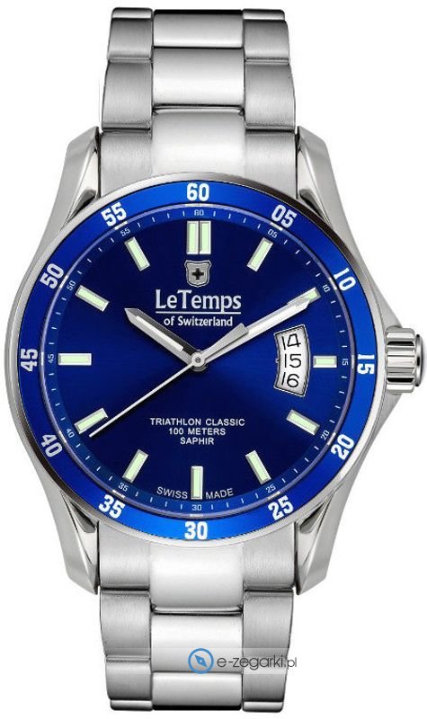 Le Temps LT1078.13BS01 to męski zegarek kierowany dla osób szukających zegarka z serii Le Temps Triathlon. Charakteru dodaje wysokiej klasy cyferblat w kolorze niebieskim. Zegarek ten pokazuje godzinę w formacie analogowym dzięki temu odczyt jest bardzo łatwy. Koperta jest w kolorze srebrnym szeroka jest na 41 mm oraz ma grubość 12 mm - charakteryzuje się okrągłym kształtem.