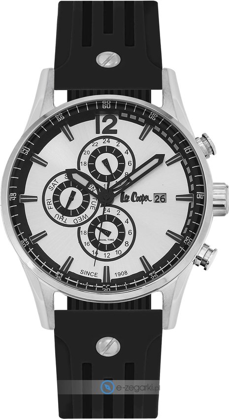 Zegarek męski LC06419.331 marki Lee Cooper to ciekawa pozycja dla ludzi ceniących sobie dbałość o szczegóły a także bezproblemowe funkcjonowanie mechanizmów. Charakteru dodaje wysokiej klasy cyferblat w kolorze białym. Koperta jest ozdobiona kolorem stalowym szeroka jest na 44 mm - ma okrągły kształt.