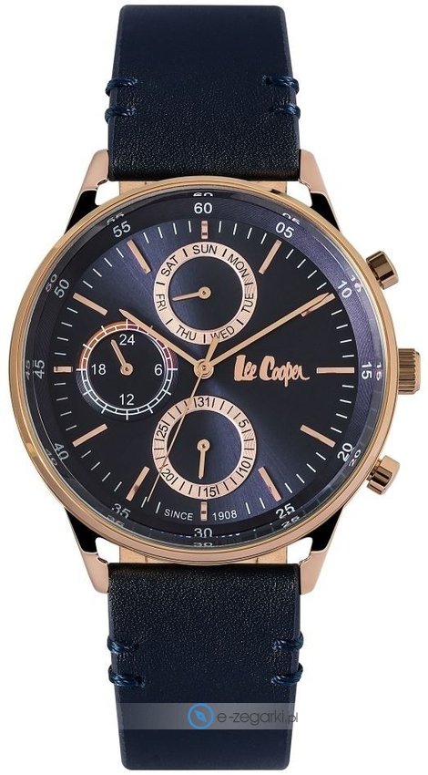 Zegarek męski LC06480.499 marki Lee Cooper to dobra propozycja dla ludzi ceniących sobie dbałość o szczegóły jak również bezawaryjne zachowanie mechanizmów. Tarcza zegarka w kolorze granatowym. Koperta szeroka jest na 42 mm - w kształcie okrągłym.