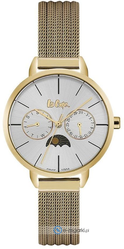 Zegarek męski LC06482.130 marki Lee Cooper to stylowe połączenie funkcjonalności a także modnego designu. Wysokiej trwałości cyferblat zegarka pokryto szarym kolorem. Koperta została ozdobiona kolorem złotym szeroka jest na 34 mm - wyróżnia się okrągłym kształtem.