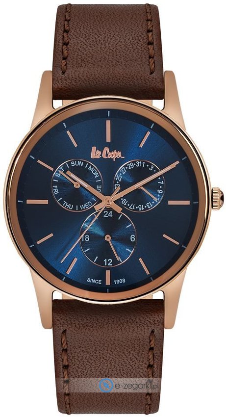 Model LC06499.492 marki Lee Cooper to elegancki zegarek naręczny męski, który wyposażono w ciekawe rozwiązania oraz funkcje. Wysokiej trwałości cyferblat zegarka pokryto granatowym kolorem. Koperta szeroka jest na 42 mm - w kształcie okrągłym.