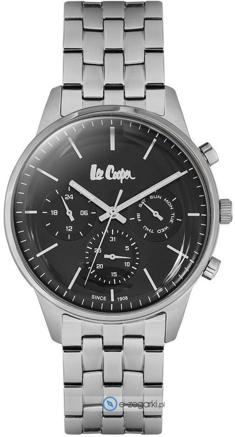 Zegarek męski LC06505.350 marki Lee Cooper to dobre połączenie funkcjonalności a także ciekawego designu. Stylu nadaje wysokiej klasy cyferblat w kolorze czarnym. Koperta w barwach koloru stalowego szeroka jest na 41 mm - cechuje się okrągłym kształtem.
