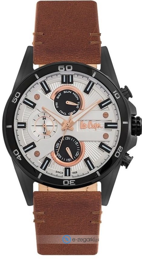Lee Cooper to marka, która rozpoczęła swoją działalność w Londynie w 1908 roku. Jest najstarszą europejską marką zajmująca się produkcją popularnej odzieży jeansowej. Dzisiaj brand ten można znaleźć praktycznie na wszystkich kontynentach w przeszło 5000 punktach sprzedaży. Aby być kompletną marką modową oczywiście nie mogło zabrankąć zegarków, stąd właśnie decyzja o powiększeniu asortymentu i produkcji czasomierzy Lee Cooper. Zegarki Lee Cooper tak jak reszta produktów marki charakteryzuje wysoka jakość wykonania w atrakcyjnej cenie. Zegarki zawsze mają bardzo dobre wykończenie, a także dopracowane w szczegółach detale. Sprzedawane w naszym sklepie zegarki Lee Coooper pochodzą od oficjalnego polskiego dystyrbutora i objęte są dwuletnia. Dzięki temu masz pewność, że zakupiony zegarek zawsze gdy zajdzie taka konieczność będzie mógł być odpowiednio traktowany w ewentualnym procesie gwarancyjnym lub pogwarancyjnym.