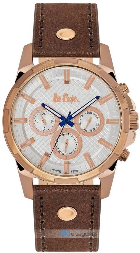 Lee Cooper to to brand założony w Londynie w 1908 roku. Jest najstarszą europejską marką zajmująca się produkcją popularnej odzieży jeansowej. Dzisiaj brand ten dostępny jest praktycznie na wszystkich kontynentach w przeszło 5000 punktach sprzedaży. Do kompletu oprócz odzieży brakowało tylko zegarków, stąd właśnie decyzja o powiększeniu asortymentu i produkcji czasomierzy Lee Cooper. Zegarki Lee Cooper podobnie jak reszta produktów marki oferują niezwykle wysoką jakość wykonania w atrakcyjnej cenie. Zegarki zawsze mają bardzo dobre wykończenie, a także dopracowane w szczegółach detale. Sprzedawane w naszym sklepie zegarki Lee Coooper pochodzą od oficjalnego polskiego dystyrbutora i objęte są jego gwarancją. W ten sposób masz pewność, że zakupiony zegarek zawsze gdy zajdzie taka potrzeba będzie mógł być odpowiednio traktowany w ewentualnym procesie pogwarancyjnym lub gwarancyjnym.
