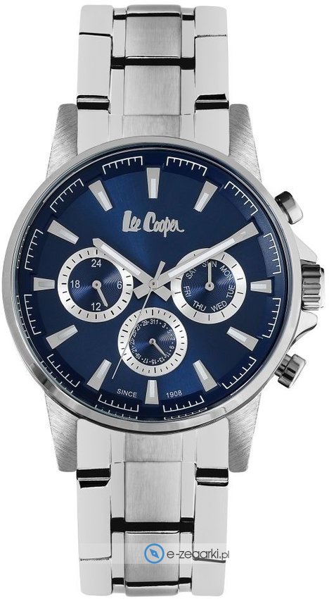 Model LC06516.390 marki Lee Cooper to elegancki zegarek naręczny męski, który posiada pomysłowe rozwiązania i funkcje. Niestereotypowy wygląd zegarka osiągnięto również dzięki tarczy w kolorze granatowym. Koperta jest w kolorze stalowym szeroka jest na 44 mm - cechuje się okrągłym kształtem.
