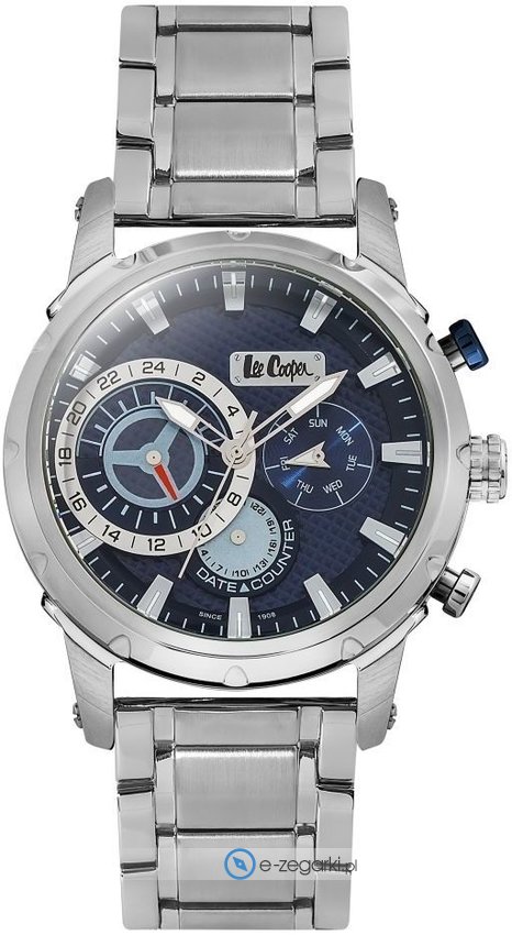 Zegarek męski LC06519.390 marki Lee Cooper to dobre połączenie funkcjonalności oraz modnego wzornictwa. Charakterystyczny wygląd czasomierza uzyskano dzięki tarczy w kolorze granatowym. Koperta w odcieniach koloru stalowego szeroka jest na 47 mm - wyróżnia się okrągłym kształtem.