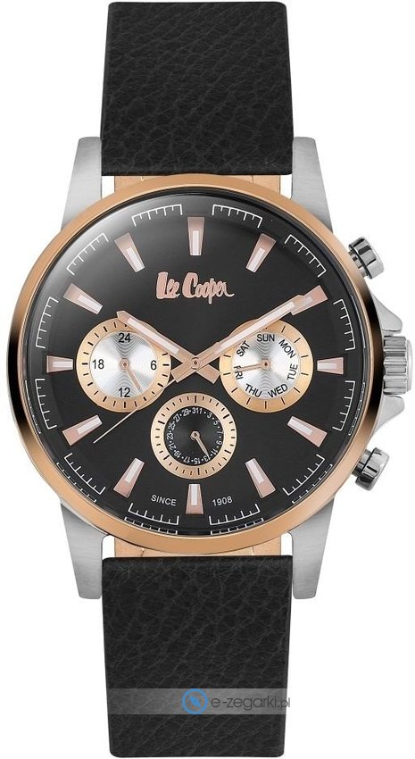 Zegarek męski LC06528.551 marki Lee Cooper to stylowe połączenie funkcjonalności oraz ciekawego designu. Wysokiej trwałości tarczę zegarka ozdobiono czarnym kolorem. Koperta jest w kolorze stalowym szeroka jest na 44 mm - w kształcie okrągłym.