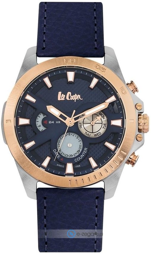 Zegarek męski LC06531.599 marki Lee Cooper to idealne połączenie funkcjonalności a także ciekawego wzornictwa. Charakter zapewnia wysokiej klasy tarcza w kolorze granatowym. Koperta szeroka jest na 48 mm - w kształcie okrągłym.