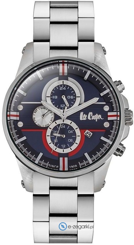 Model LC06535.390 marki Lee Cooper to stylowy zegarek naręczny męski, który posiada ciekawe rozwiązania oraz funkcje. Wysokiej trwałości cyferblat zegarka pokryto granatowym kolorem. Koperta jest w kolorze stalowym szeroka jest na 45 mm - charakteryzuje się okrągłym kształtem.