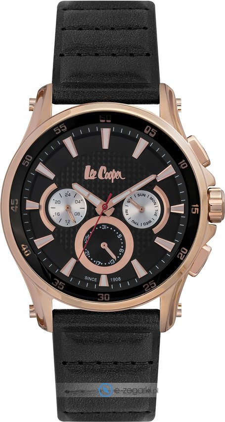 Model LC06540.451 marki Lee Cooper to stylowy zegarek naręczny męski, który wyposażono w pomysłowe rozwiązania i funkcje. Charakterystyczną stylistykę czasomierza osiągnięto dzięki tarczy w kolorze czarnym. Koperta została ozdobiona kolorem złotym - posiada okrągły kształt.