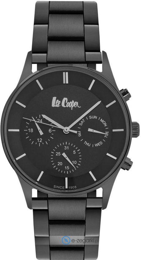 Zegarek męski LC06550.060 marki Lee Cooper to dobre połączenie funkcjonalności a także modnego designu. Wysokiej jakości cyferblat zegarka ozdobiono czarnym kolorem. Koperta szeroka jest na 41 mm - cechuje się okrągłym kształtem.