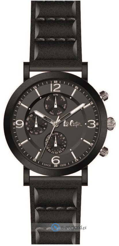 Zegarek męski LC06590.651 marki Lee Cooper to ciekawa propozycja dla osób ceniących sobie dbałość o szczegóły oraz bezproblemowe funkcjonowanie mechanizmów. Wysokiej jakości tarczę zegarka pokryto czarnym kolorem. Koperta jest w kolorze czarnym szeroka jest na 44 mm - posiada okrągły kształt.