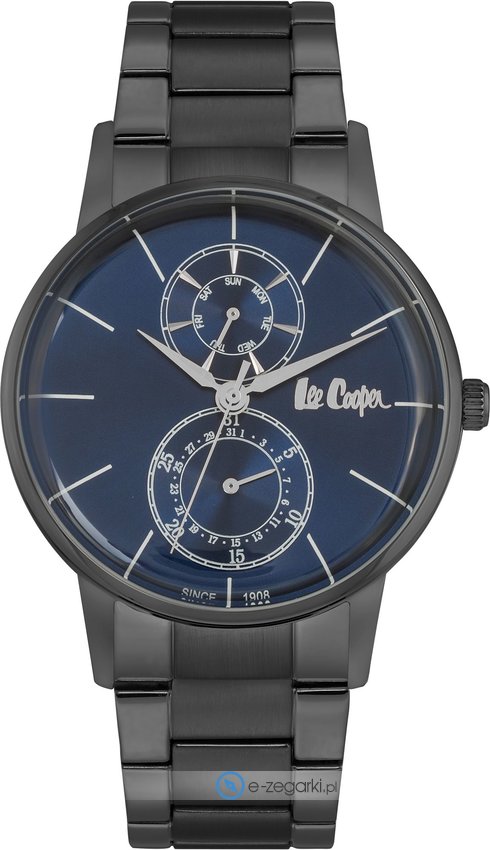 Zegarek męski LC06613.090 marki Lee Cooper to ciekawa pozycja dla osób ceniących sobie dbałość o szczegóły a także bezawaryjne funkcjonowanie mechanizmów. Atrakcyjną konstrukcję zegarka uzyskano dzięki tarczy w kolorze granatowym. Koperta jest ozdobiona kolorem czarnym - cechuje się okrągłym kształtem.