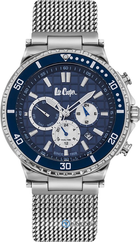 Zegarek męski LC06641.390 marki Lee Cooper to dobre połączenie funkcjonalności oraz modnego designu. Cyferblat zegarka w kolorze niebieskim. Koperta w odcieniach koloru stalowego - ma okrągły kształt.