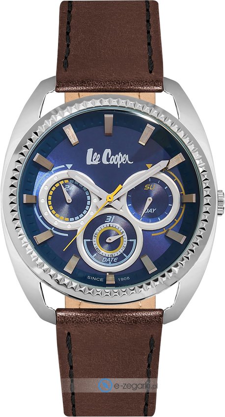 Zegarek męski LC06664.395 marki Lee Cooper to idealne połączenie funkcjonalności a także ciekawego wzornictwa. Wysokiej jakości tarczę zegarka pokryto granatowym kolorem. Koperta jest w kolorze stalowym - wyróżnia się okrągłym kształtem.