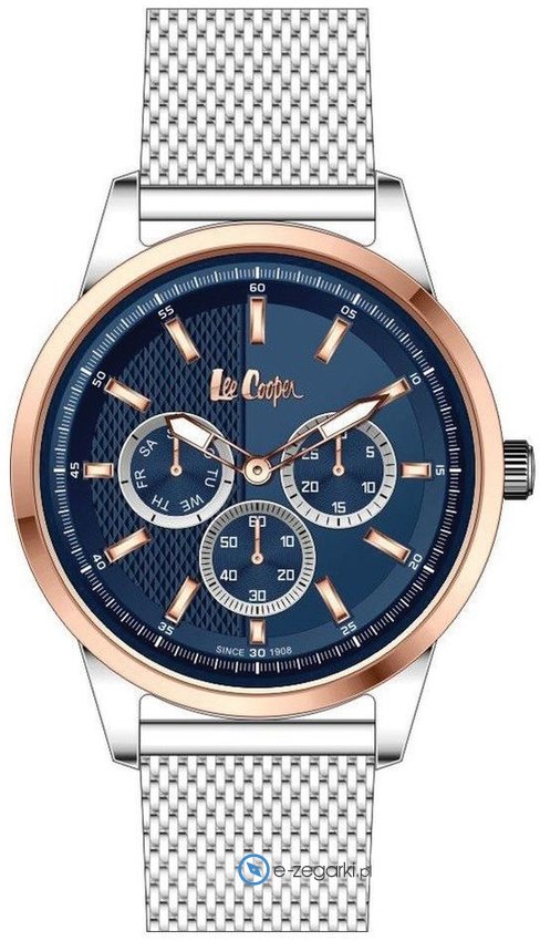 Zegarek męski LC06670.590 marki Lee Cooper to dobra propozycja dla osób ceniących sobie dbałość o szczegóły oraz sprawne zachowanie mechanizmów. Tarcza zegarka w kolorze granatowym. Koperta w odcieniach koloru stalowego szeroka jest na 42 mm - w kształcie okrągłym.