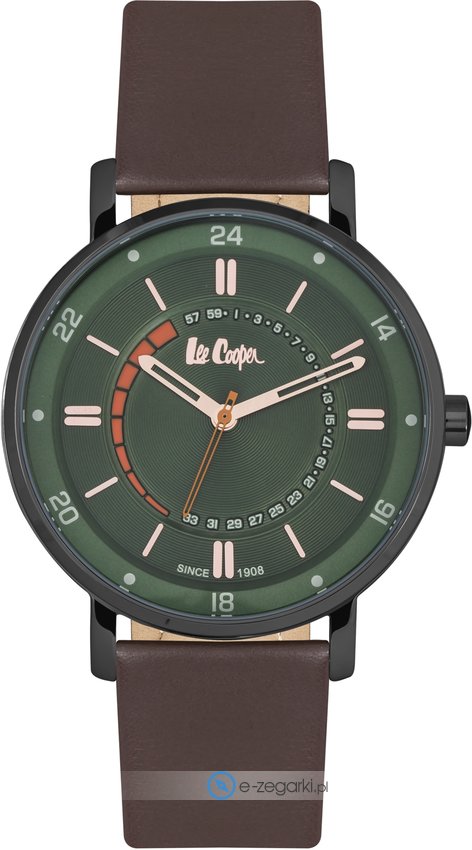 Model LC06691.672 marki Lee Cooper to stylowy zegarek naręczny męski, który wyposażono w pomysłowe rozwiązania oraz funkcje. Charakter zapewnia wysokiej jakości cyferblat w kolorze zielonym. Godzina zaprezentowana jest w sposób analogowy co bez trudu pozwala ją odczytać. Koperta szeroka jest na 43 mm - w kształcie okrągłym.
