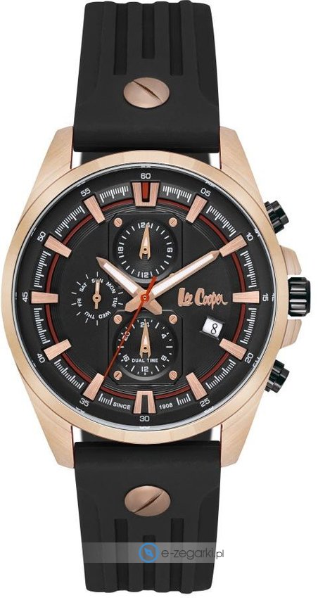 Zegarek męski LC06706.451 marki Lee Cooper to ciekawa pozycja dla ludzi ceniących sobie dbałość o detale jak również bezawaryjne funkcjonowanie mechanizmów. Cyferblat zegarka w kolorze czarnym. Koperta szeroka jest na 44 mm - w kształcie okrągłym.