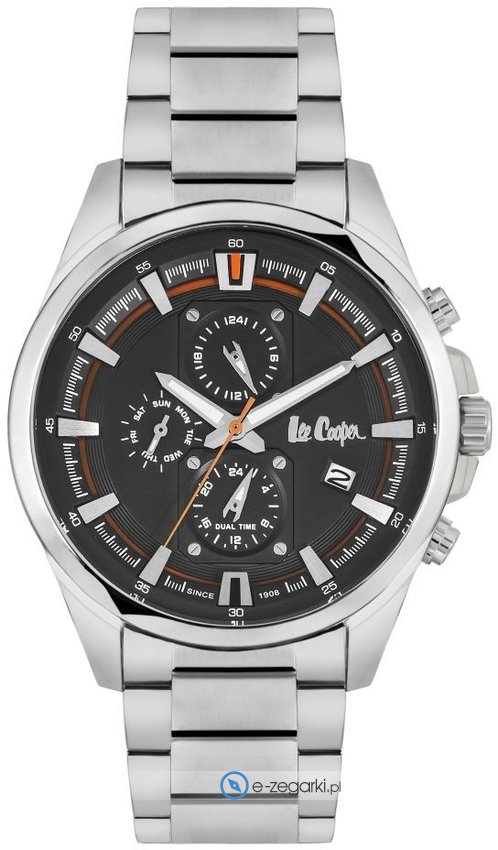 Model LC06707.350 marki Lee Cooper to gustowny zegarek naręczny męski, który jest wyposażony w ciekawe rozwiązania i funkcje. Wysokiej trwałości tarczę zegarka ozdobiono czarnym kolorem. Koperta została pokryta kolorem stalowym szeroka jest na 44 mm - w kształcie okrągłym.