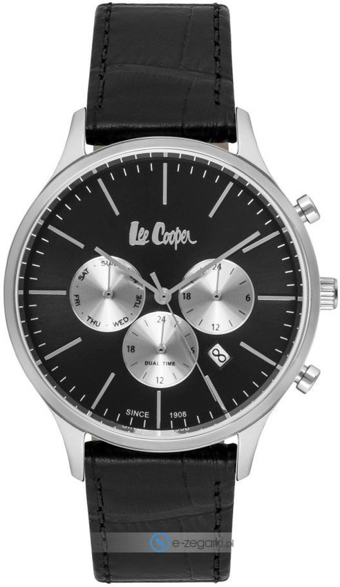 Model LC06714.351 marki Lee Cooper to elegancki zegarek naręczny męski, który posiada pomysłowe rozwiązania i funkcje. Charakteru nadaje wysokiej klasy tarcza w kolorze czarnym. Koperta w odcieniach koloru stalowego szeroka jest na 43 mm - w kształcie okrągłym.