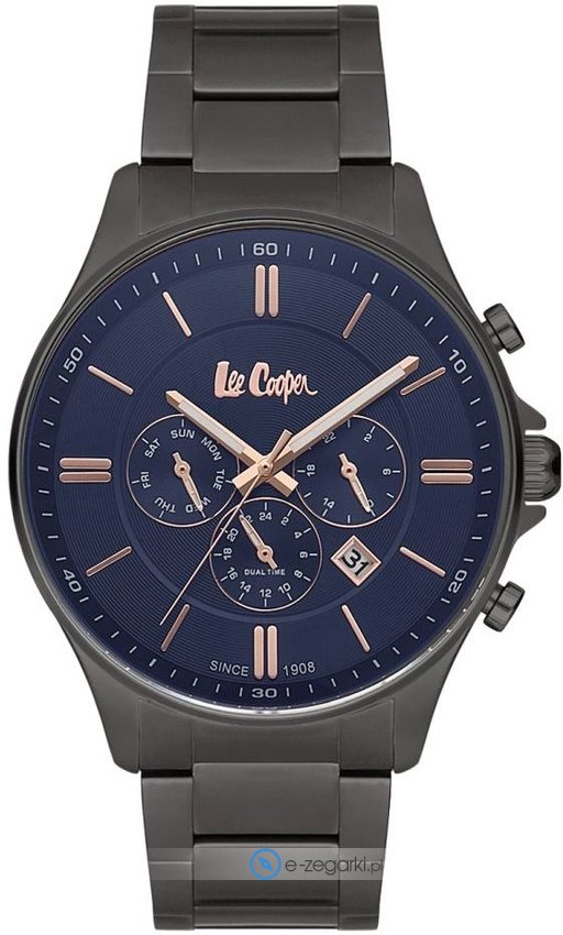 Model LC06719.090 marki Lee Cooper to elegancki zegarek naręczny męski, który jest wyposażony w ciekawe rozwiązania i funkcje. Tarcza zegarka w kolorze granatowym. Koperta szeroka jest na 45 mm - cechuje się okrągłym kształtem.