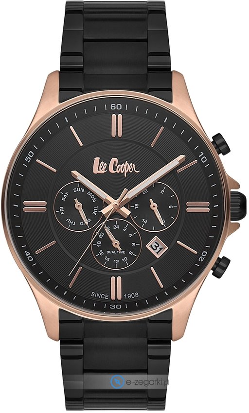 Lee Cooper to marka, która rozpoczęła swoją działalność w Londynie w 1908 roku. Jest najstarszym europejskim brandem zajmującym się produkcją popularnej odzieży jeansowej. Obecnie brand ten można znaleźć praktycznie na wszystkich kontynentach w przeszło 5000 punktach sprzedaży. Aby być kompletną marką modową oczywiście nie mogło zabrankąć zegarków, stąd właśnie decyzja o powiększeniu asortymentu i produkcji czasomierzy Lee Cooper. Zegarki Lee Cooper tak jak reszta produktów marki charakteryzuje wysoka jakość wykonania w atrakcyjnej cenie. Zegarki cechują się dopracowanymi detalami oraz precyzyjnym wykończeniem. Sprzedawane w naszym sklepie zegarki Lee Coooper pochodzą od oficjalnego polskiego dystyrbutora i objęte są jego gwarancją. Dzięki temu masz pewność, że zakupiony zegarek zawsze gdy zajdzie taka konieczność będzie mógł być odpowiednio traktowany w ewentualnym procesie pogwarancyjnym lub gwarancyjnym.