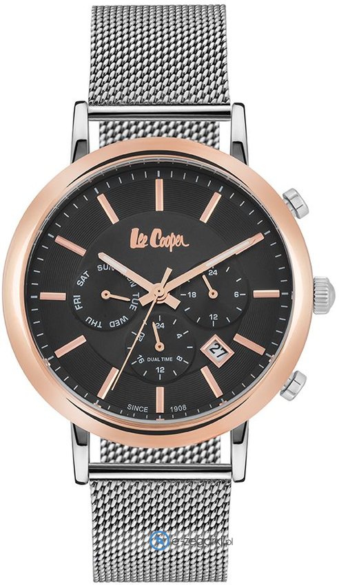 Lee Cooper to to brand założony w Londynie w 1908 roku. Jest najstarszym europejskim brandem zajmującym się produkcją używanej na codzień odzieży jeansowej. W dzisiejszych czasach brand ten można zobaczyć na wszystkich kontynentach w przeszło 5000 punktach sprzedaży. Do kompletu oprócz odzieży brakowało tylko zegarków, stąd właśnie decyzja o powiększeniu asortymentu i produkcji czasomierzy Lee Cooper. Zegarki Lee Cooper podobnie jak reszta produktów marki charakteryzuje wysoka jakość wykonania w przystępnej cenie. Zegarki zawsze mają bardzo dobre wykończenie, a także dopracowane w szczegółach detale. Sprzedawane w naszym sklepie zegarki Lee Coooper pochodzą od oficjalnego dystyrbutora i objęte są dwuletnia. Dzięki temu masz pewność, że zakupiony zegarek zawsze gdy zajdzie taka potrzeba będzie właściwie traktowany w ewentualnym procesie gwarancyjnym lub pogwarancyjnym.