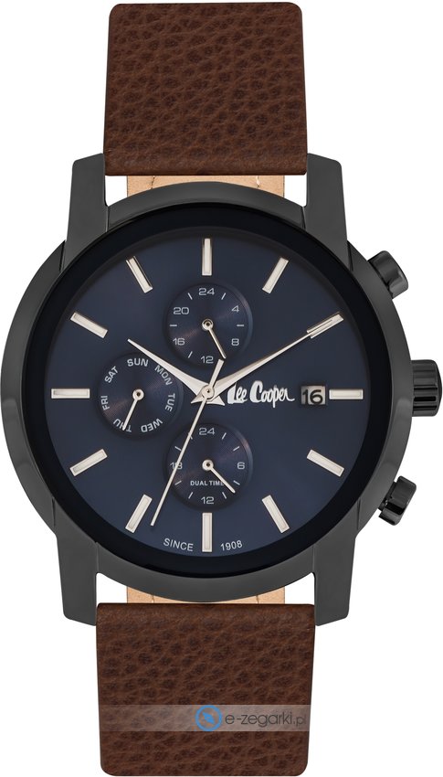 Zegarek męski LC06759.095 marki Lee Cooper to dobra propozycja dla ludzi ceniących sobie dbałość o szczegóły oraz sprawne funkcjonowanie mechanizmów. Charakter zapewnia wysokiej jakości tarcza w kolorze granatowym. Godzina pokazywana jest w sposób analogowy co niezmiernie łatwo pozwala ją odczytać. Koperta została pokryta kolorem stalowym szeroka jest na 44 mm - cechuje się okrągłym kształtem.