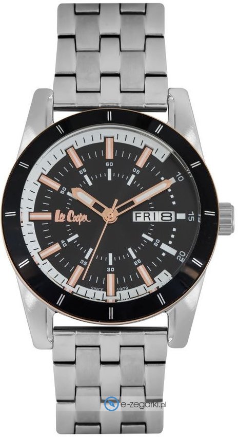 Lee Cooper to marka, która powstała w Londynie w 1908 roku. Jest najstarszą europejską marką zajmująca się produkcją popularnej odzieży jeansowej. Obecnie brand ten dostępny jest praktycznie na wszystkich kontynentach w przeszło 5000 punktach sprzedaży. Do kompletu oprócz odzieży brakowało tylko zegarków, stąd właśnie decyzja o powiększeniu asortymentu i produkcji zegarków Lee Cooper. Zegarki Lee Cooper podobnie jak reszta produktów marki oferują niezwykle wysoką jakość wykonania w atrakcyjnej cenie. Zegarki zawsze mają bardzo dobre wykończenie, a także dopracowane w szczegółach detale. Sprzedawane w naszym sklepie zegarki Lee Coooper pochodzą od oficjalnego dystyrbutora i objęte są jego gwarancją. W ten sposób masz pewność, że zakupiony zegarek zawsze gdy zajdzie taka konieczność będzie odpowiednio traktowany w ewentualnym procesie gwarancyjnym lub pogwarancyjnym.